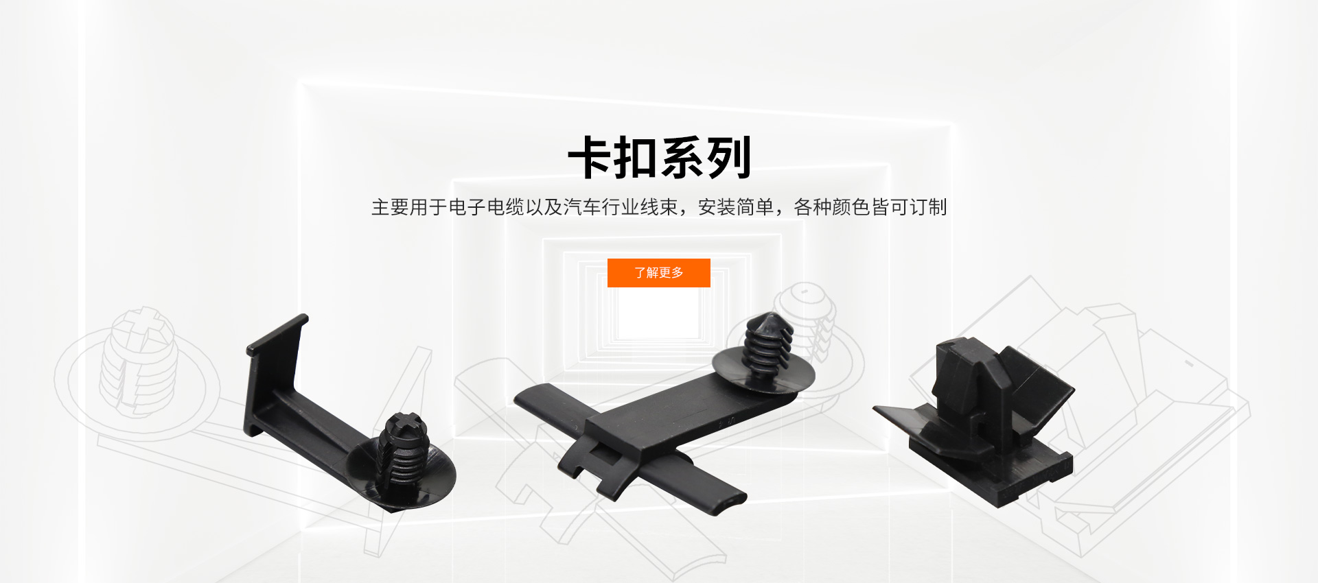 蘇州惠華電子科技有限公司一直專注于優(yōu)質(zhì)配線器材的生產(chǎn),為客戶提供扎帶、間隔柱、端子臺、汽車扎帶、汽車卡扣、汽車波紋管、家裝連接器、束線帶、閉端子、接線帽、塑膠鉚釘、線扣等產(chǎn)品。